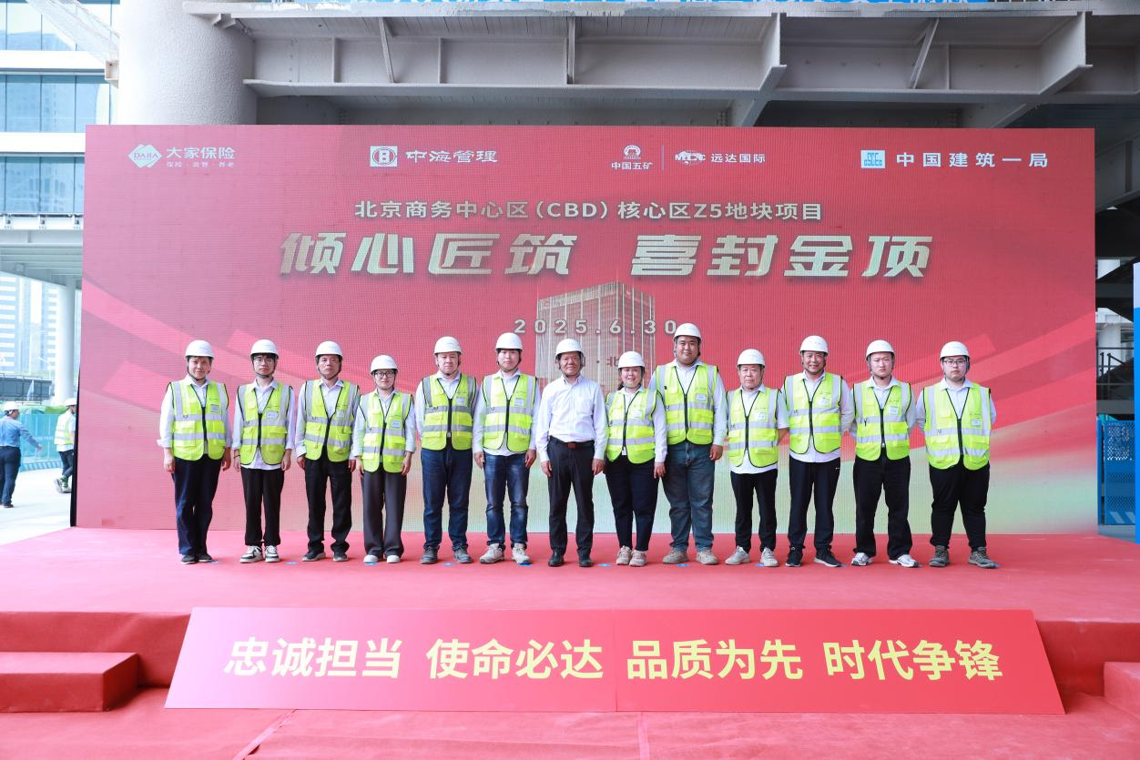 2025630日,北京大家保險CBD-Z5項目主體結構封頂,標志著本項目正式邁入裝飾裝修及設備安裝施工階段。